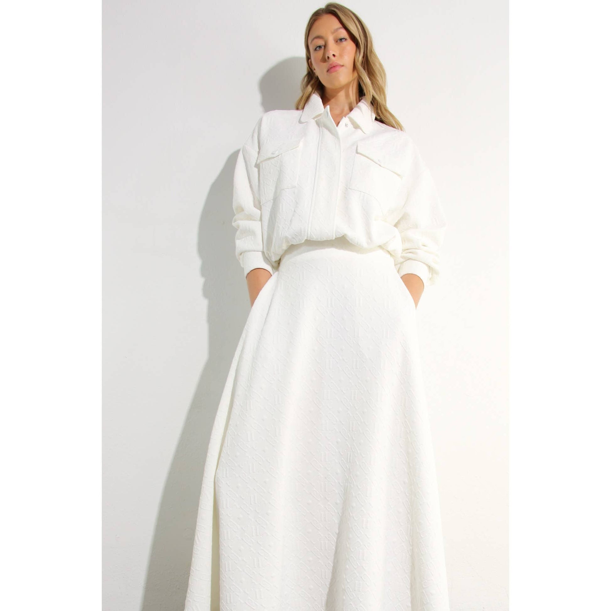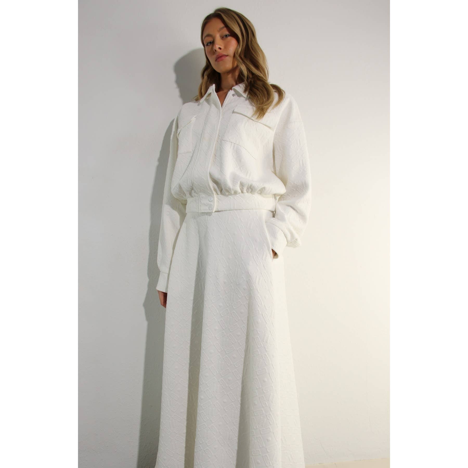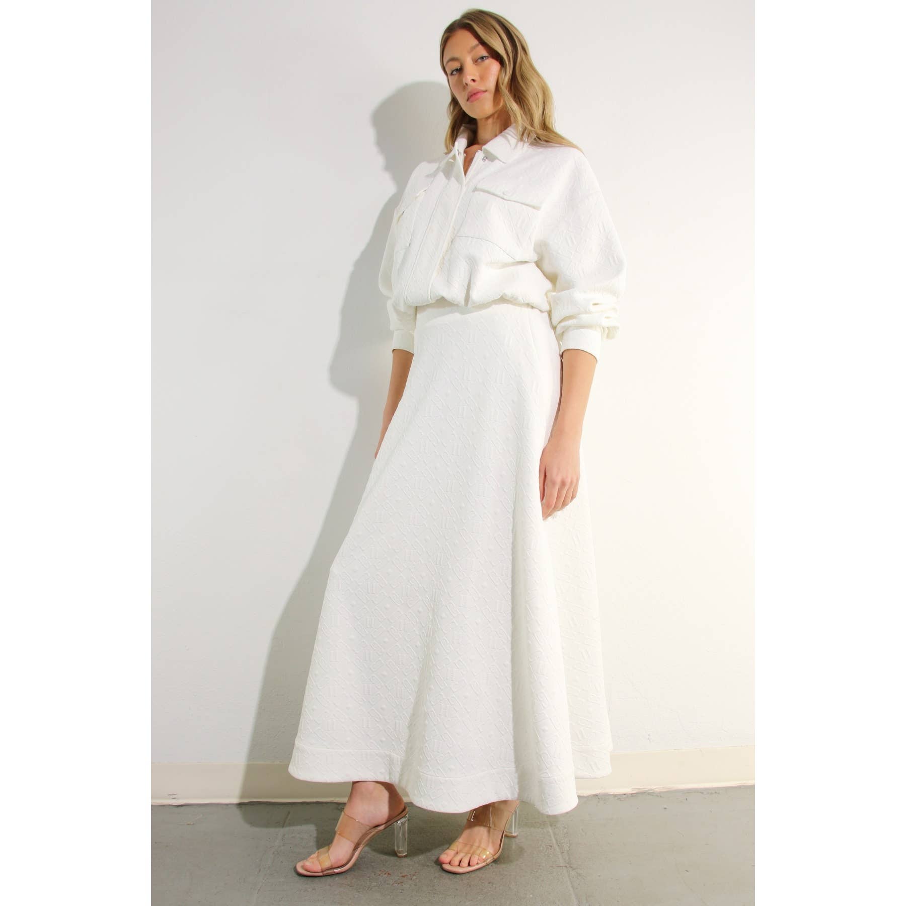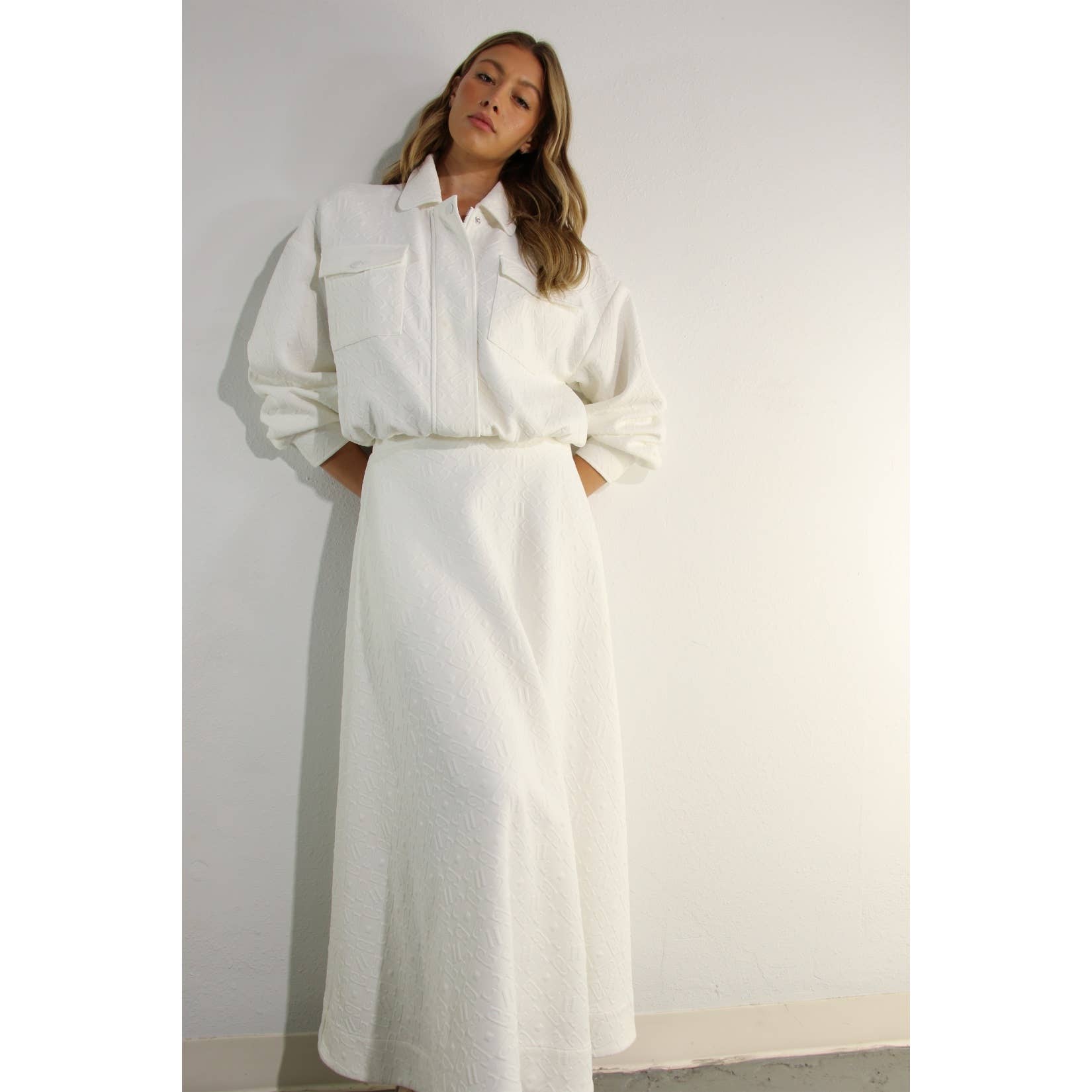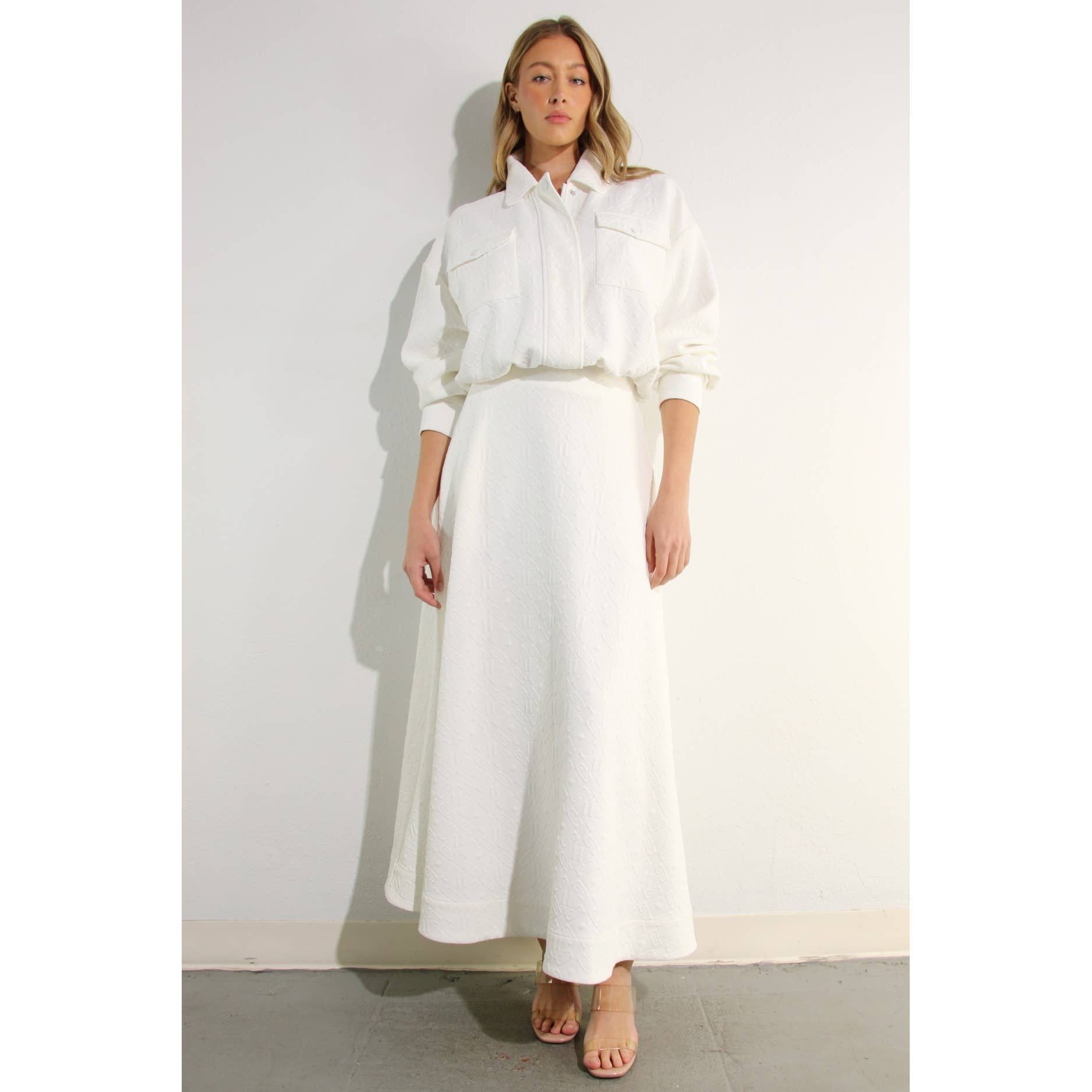 EMBOSSED JACKET AND MIDI SKIRT SET
